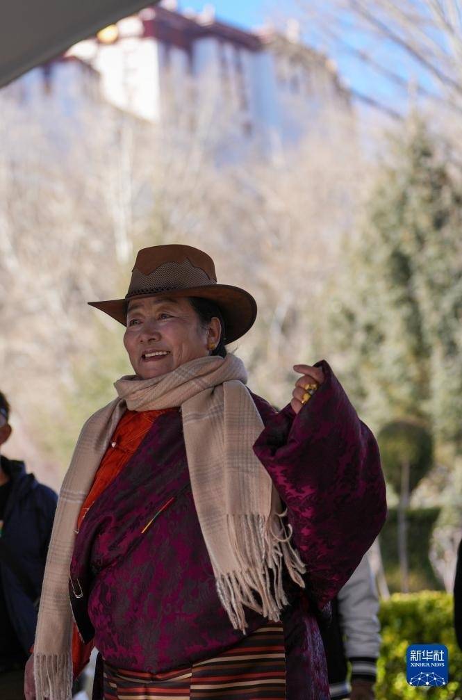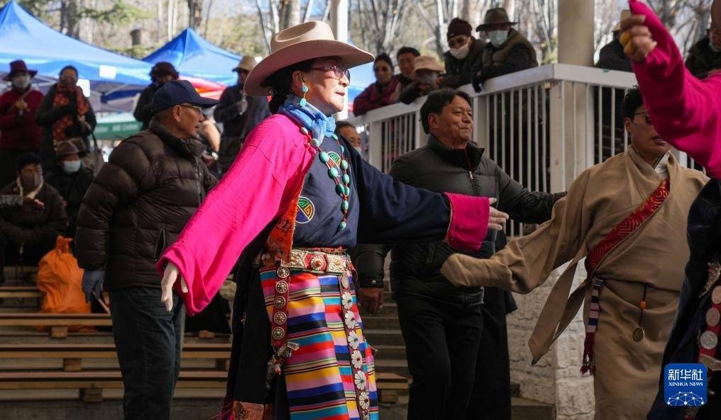 r在拉萨市布达拉宫眼下的宗角禄康公园,每天清早和傍晚,都有许多市民聚会在一王人跳“锅庄”。各族大师的歌舞蔼然,让拉萨的冬日暖意融融。